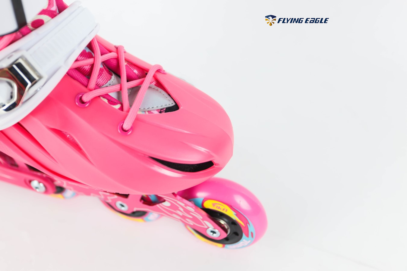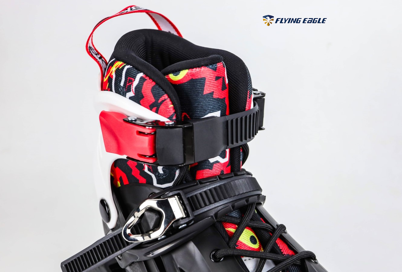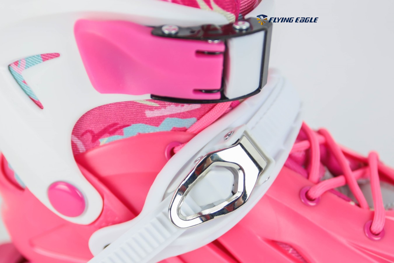 – Khóa giày: Nâng cấp hơn so với phiên bản giày patin Flying Eagle BKB K7 đó chính là thay vì sử dụng khóa dán, Flying Eagle K8 đã sử dụng khóa nhựa bán tự động ở phần thân, khóa tự động cố định ở cổ giày và có kết hợp dây buộc tăng độ ôm chân cho bé.