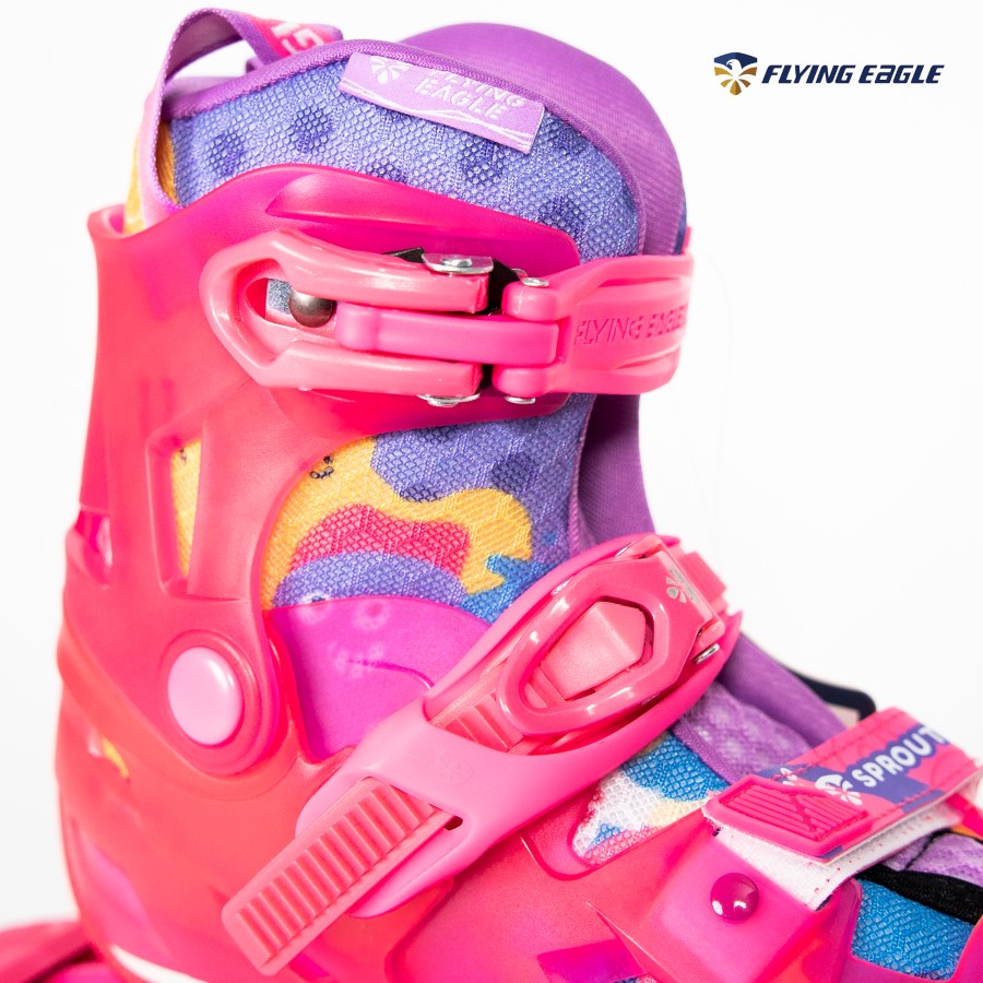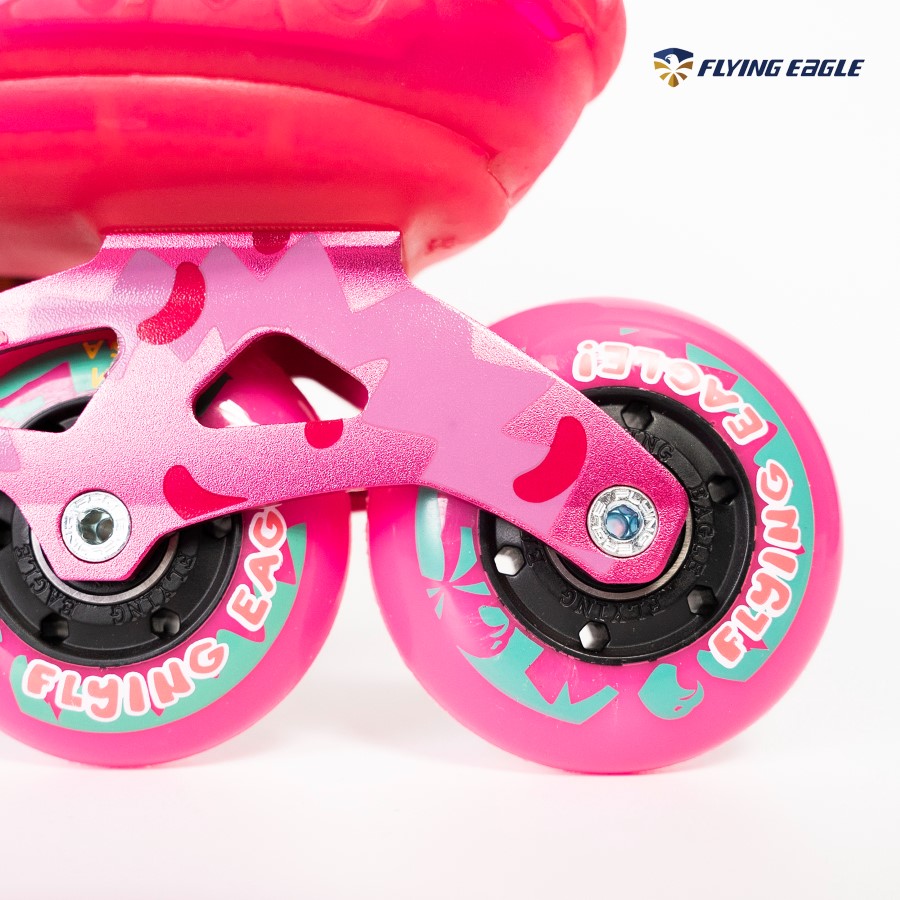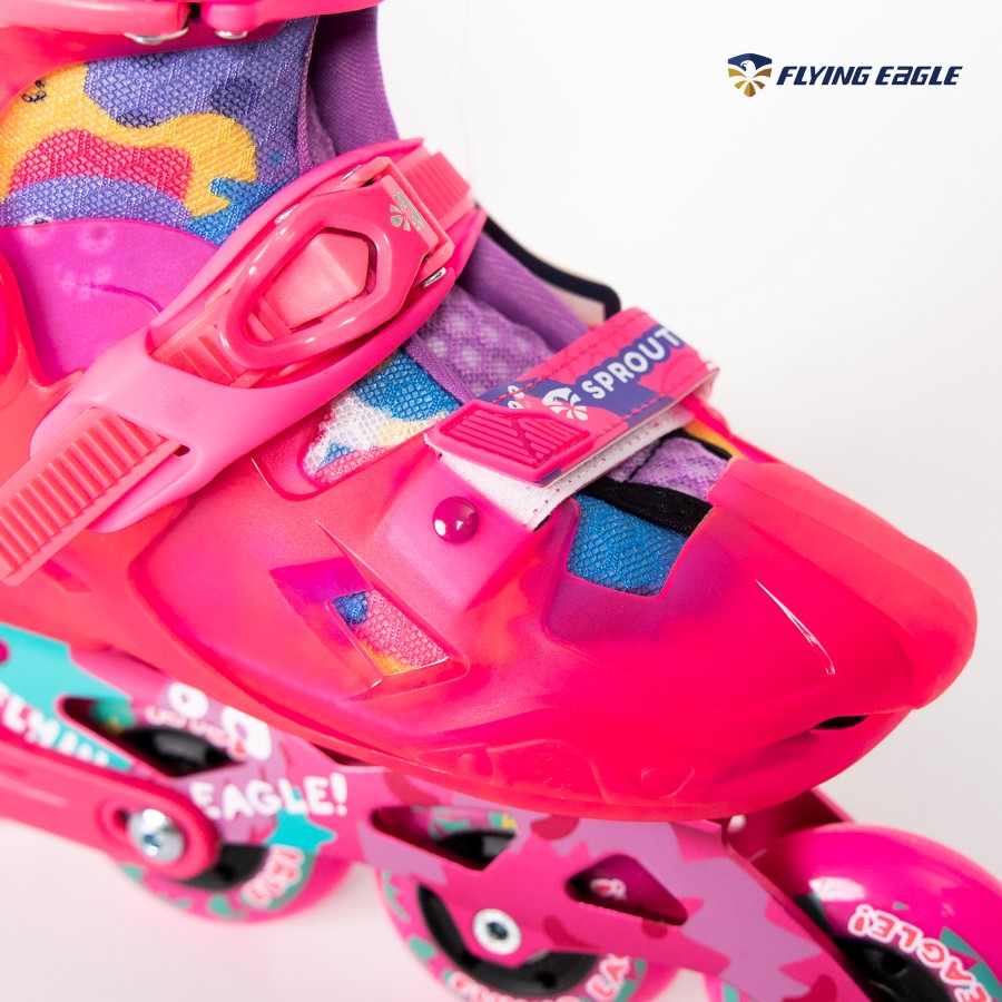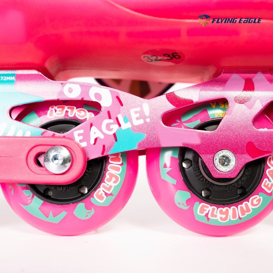 Giày Patin Trẻ Em Flying Eagle S8 có 3 màu xanh, hồng, đen với điểm nhấn đặc biệt nằm ở frame và boot giày, họa tiết siêu ngộ nghĩnh kết hợp cùng với màu sắc ấn tượng chắc chắn sẽ thu hút các bé ngay từ cái nhìn đầu tiên.